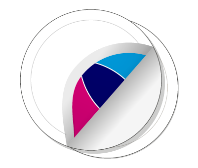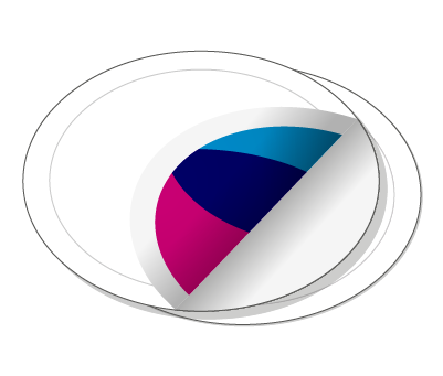 Impression réalisée sans blanc de soutien : les zones blanches de votre visuel seront transparentes sur les stickers transparents